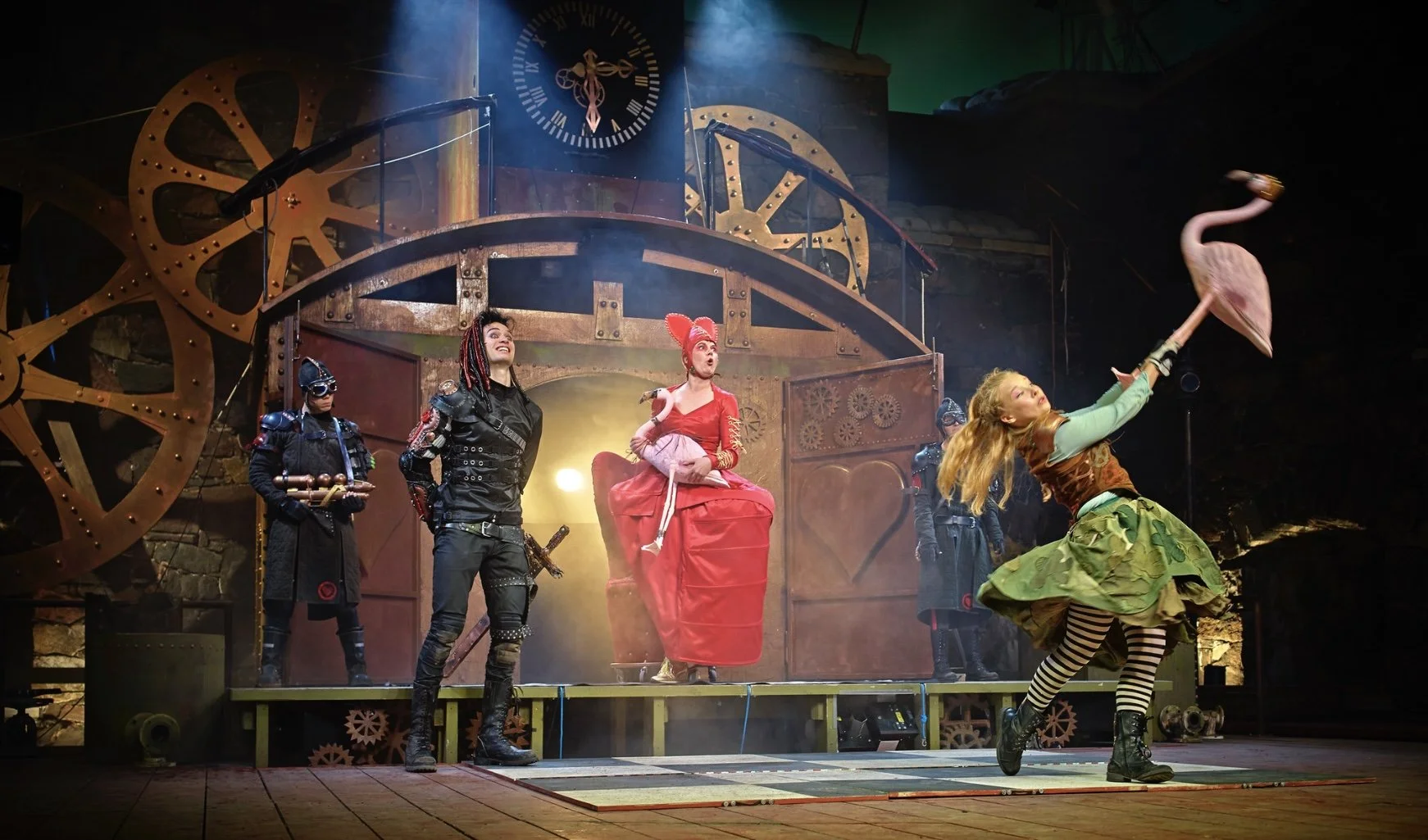 Ryhmäteatteri's stage adaptation of Alice in Wonderland is based on Lewis Carroll’s Alice's Adventures in Wonderland and Through the Looking-Glass. The play explores the search for one’s true self, the courage to be vulnerable, and the bravery to ask for help when feeling lost or emotionally tangled. A central theme is also the concern over halting climate change. The play also plays with the inventions and imagery of 19th-century steam technology, in a steampunk style.